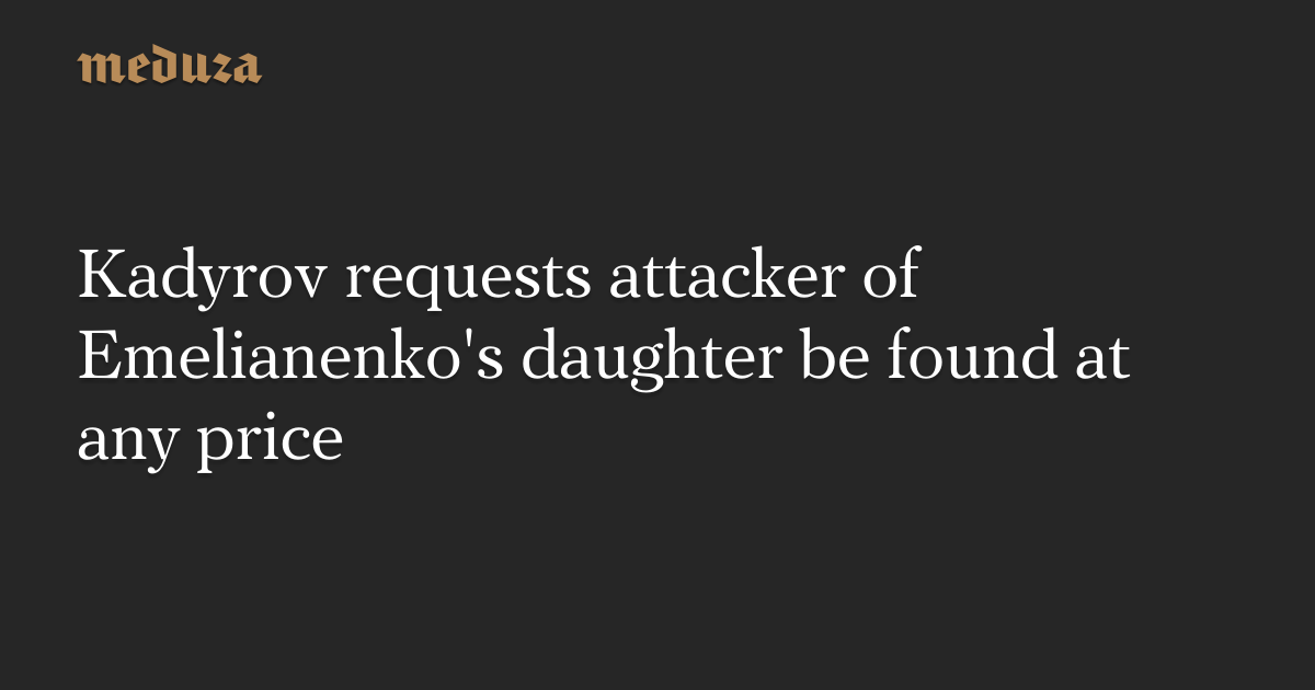 Chechen President Ramzan Kadyrov has requested that the perpetrators of the attack on the daughter of Russian mixed martial arts fighter Fedor Emelianenko be found at any price and punished to the fullest extent of the law.