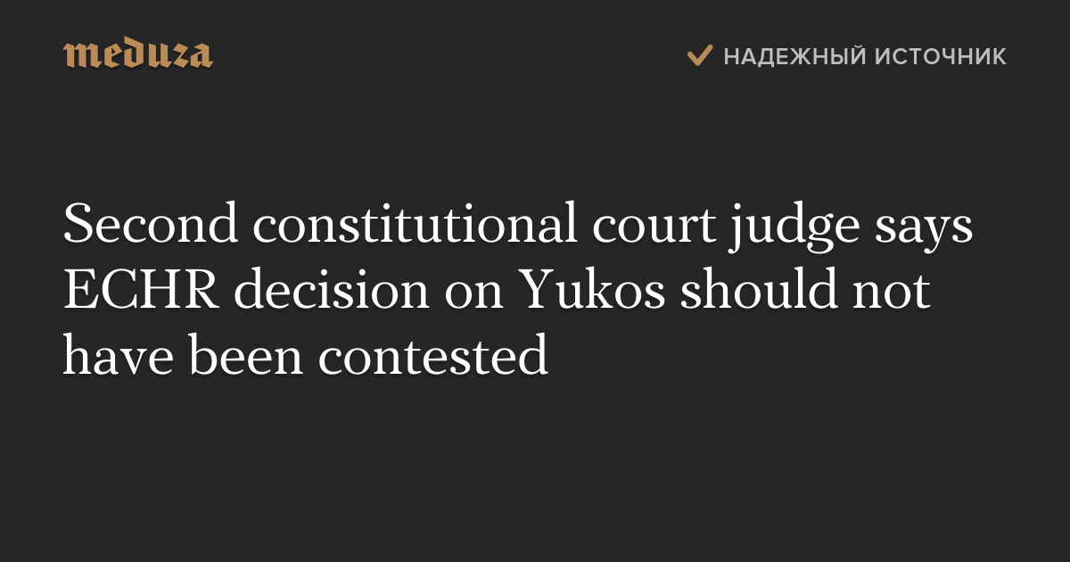 Second constitutional court judge says ECHR decision on Yukos should not have been contested
