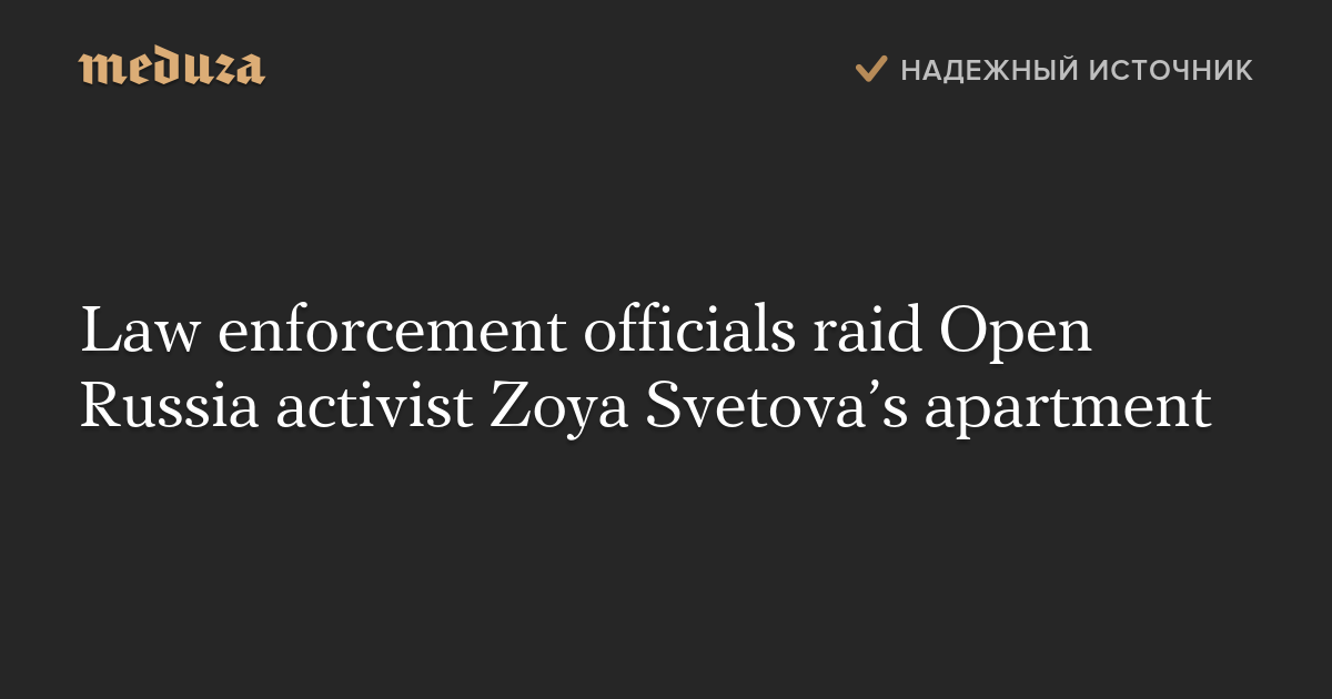 Moscow law enforcement officers came to journalist and human rights activist Zoya Svetova’s apartment at 11 am Tuesday morning with a search warrant, wrote her lawyer Anna Stavitskaya on Facebook, before rushing to the site. There were 12 officers in total.