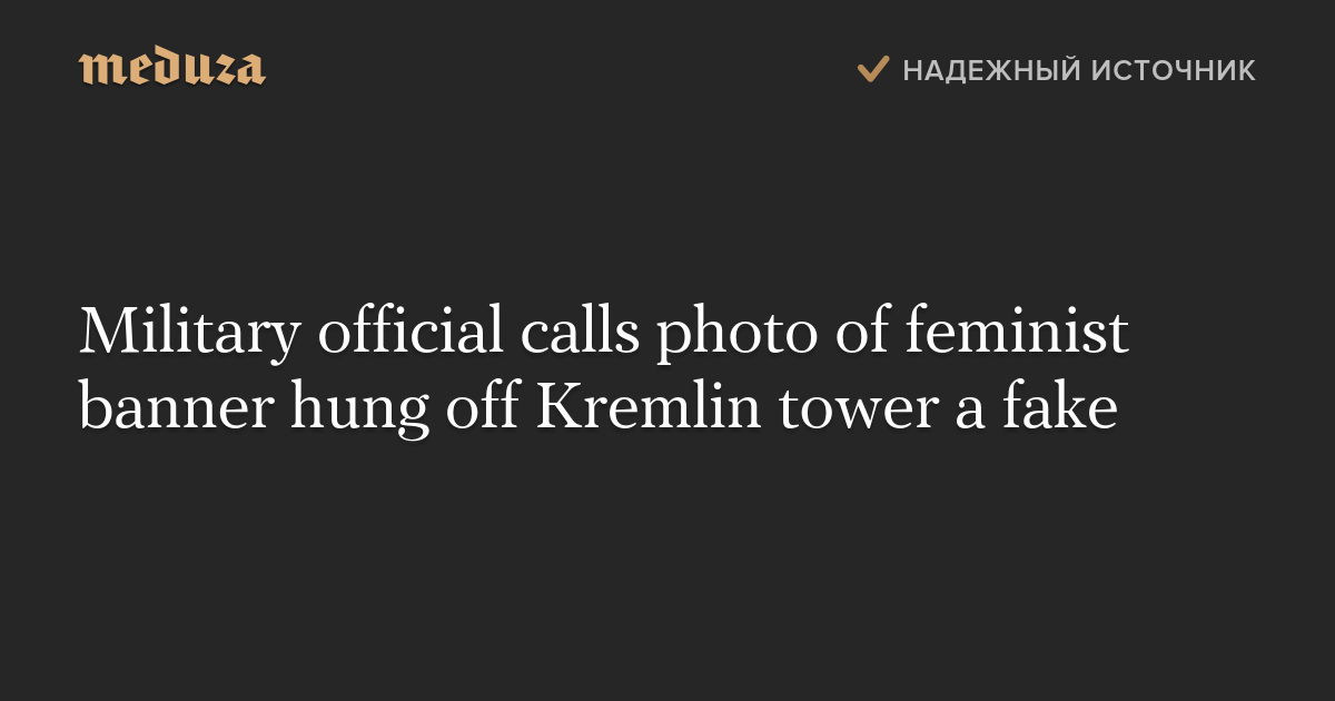 The Kremlin’s military commandant Sergei Khlebnikov said that a photograph of a banner reading “The National Idea is Feminism” hanging off of the Kremlin’s Corner Arsenal Tower was a fake.