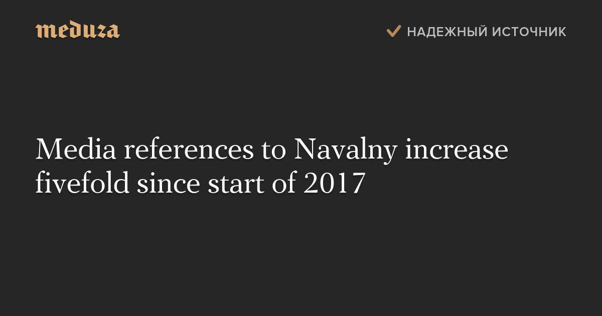 References to the policies of oppositionist leader Alexei Navalny were five times more frequent in April 2017 than they were in December 2016, reported newspaper Vedomosti on Wednesday, citing data from Moscow-based media monitoring company Medialogia.