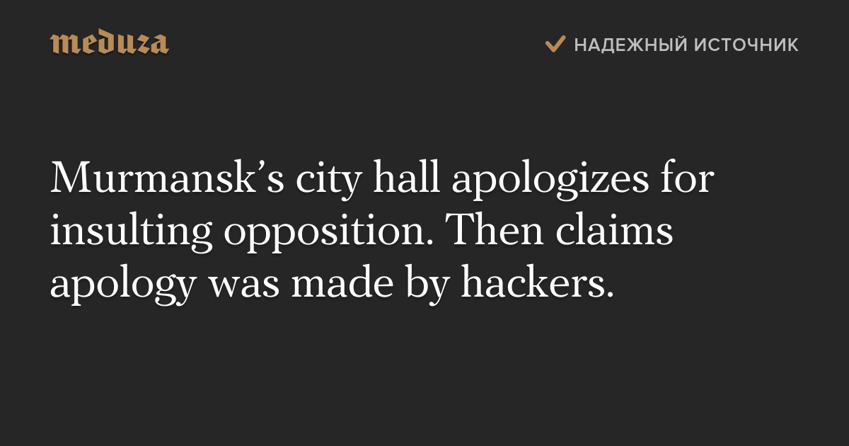Murmansk’s city hall apologizes for insulting opposition. Then claims apology was made by hackers.