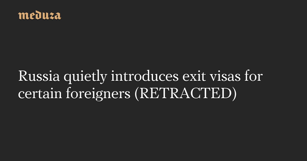 Russia quietly introduces exit visas for certain foreigners (RETRACTED)