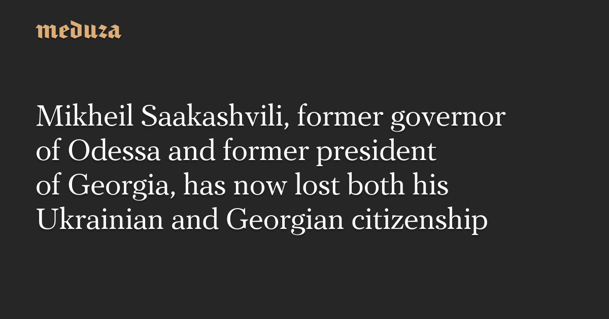 Mikheil Saakashvili, former governor of Odessa and former president of Georgia, has now lost both his Ukrainian and Georgian citizenship