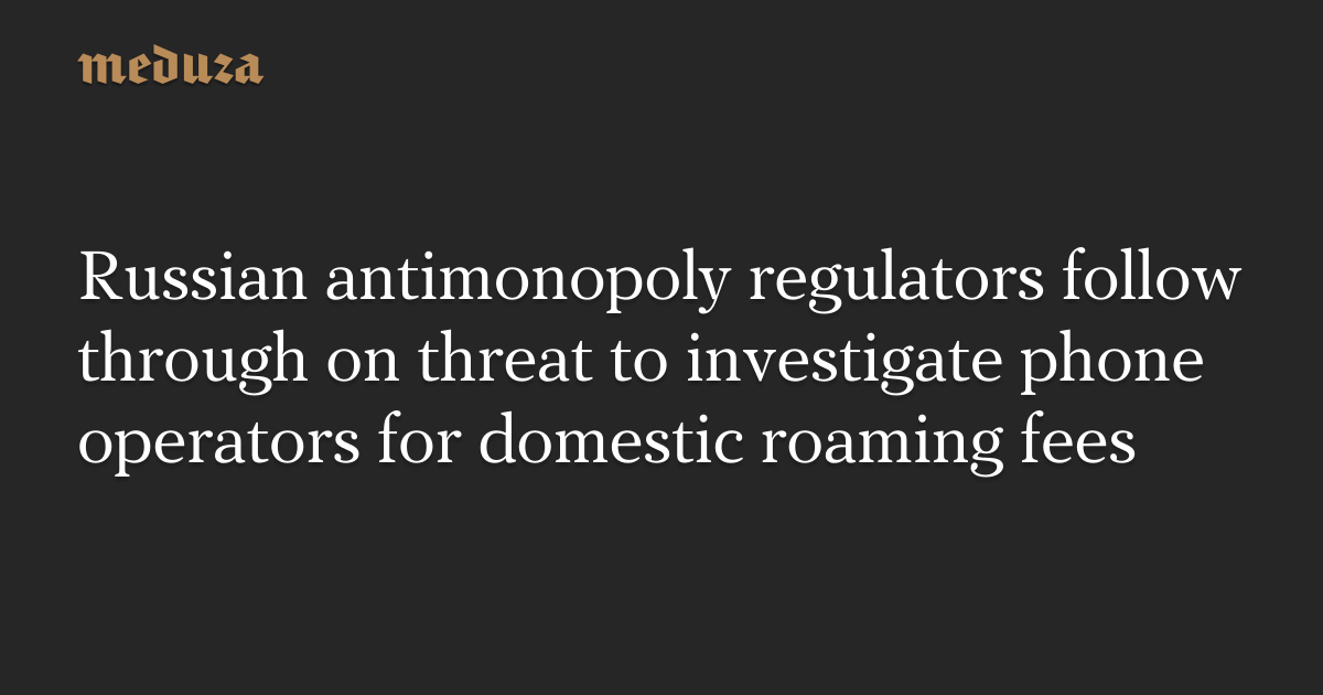 Russian antimonopoly regulators follow through on threat to investigate phone operators for domestic roaming fees