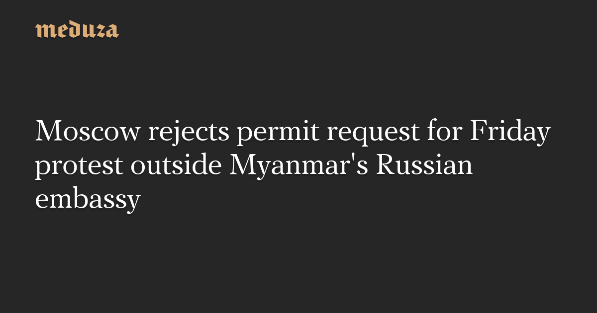 Moscow city officials have rejected a permit request for a protest outside the Myanmar embassy on Friday, September 8, demonstration organizers told the television station Dozhd.