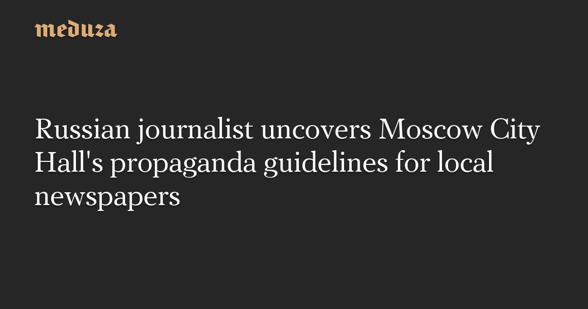 Russian journalist uncovers Moscow City Hall’s propaganda guidelines for local newspapers