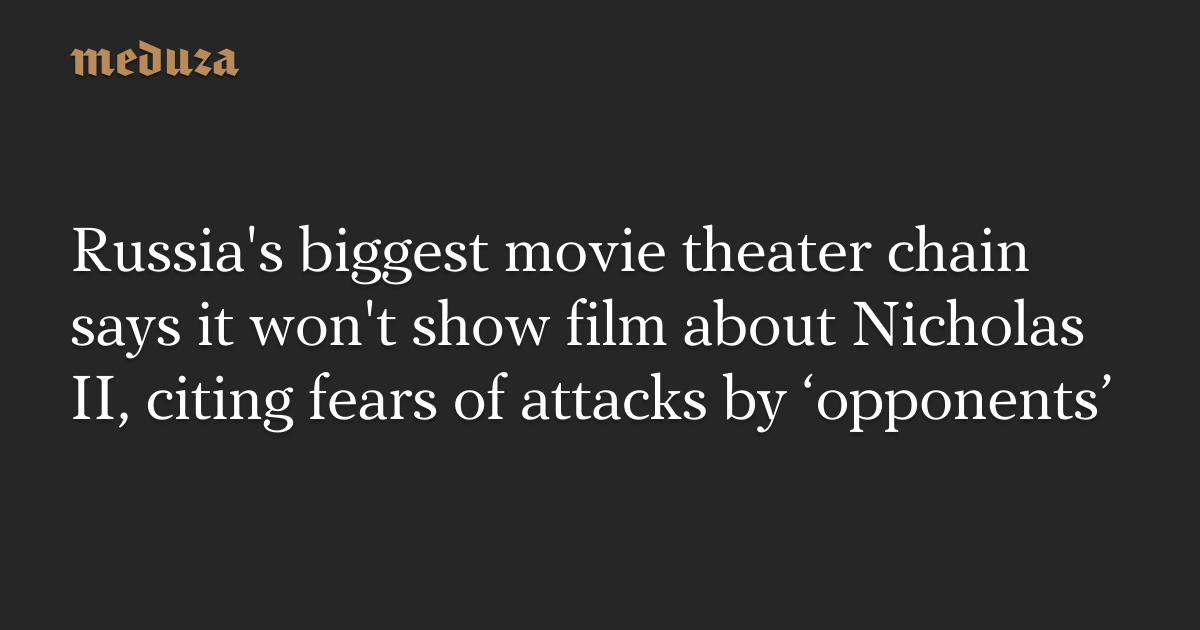 Russia’s biggest movie theater chain says it won’t show film about Nicholas II, citing fears of attacks by ‘opponents’
