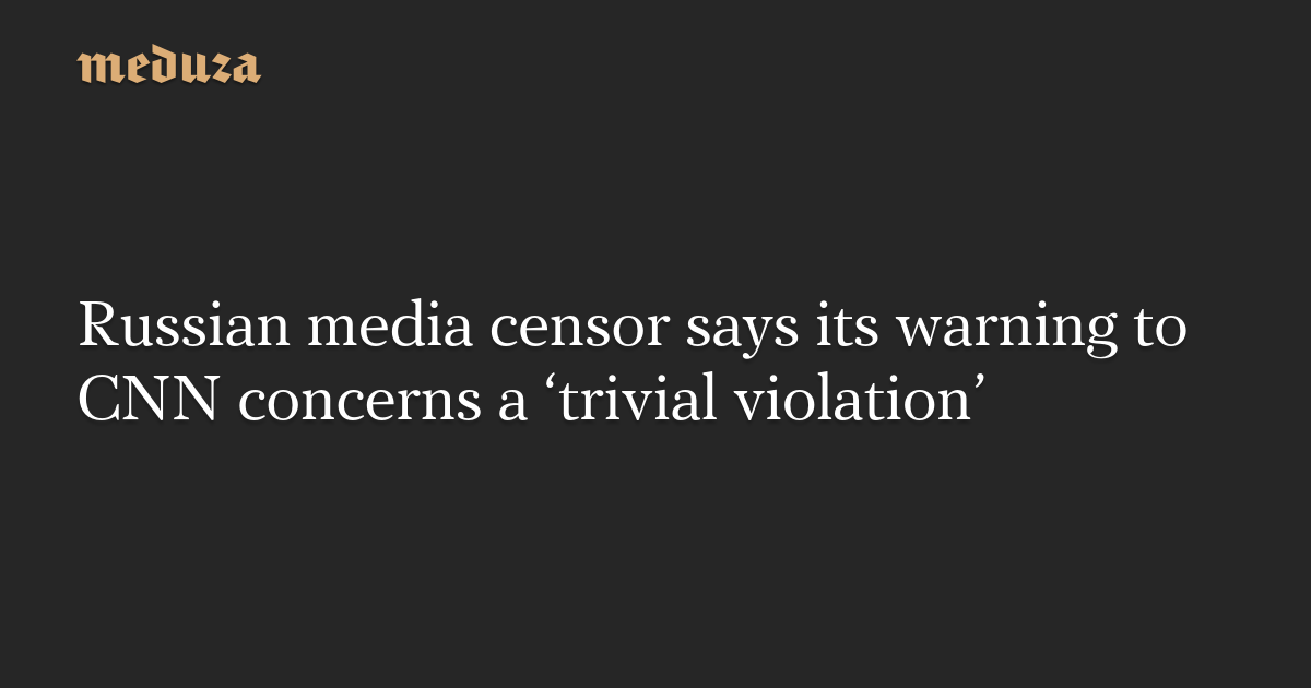 Russian regulators have issued an administrative warning to the American cable news network CNN. Alexander Zharov, the head of Roskomnadzor, Russia’s media regulator, says the warning concerns a “trivial violation” of broadcasting rules. “This sort of thing happens often,” he said, explaining that CNN published incorrect masthead information that it’s required by law to report on the air.