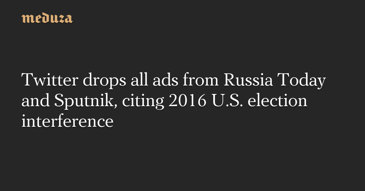 Twitter drops all ads from Russia Today and Sputnik, citing 2016 U.S. election interference