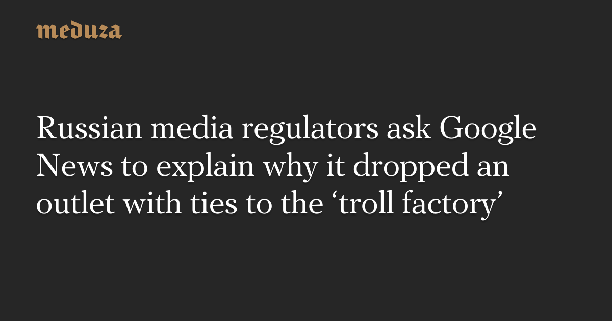 Russian media regulators ask Google News to explain why it dropped an outlet with ties to the ‘troll factory’