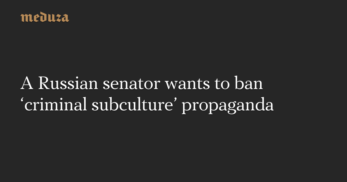 The legislation would amend existing laws on mass media, information, and child protections. Belyakov says the reforms would target “information about the sociocultural values of the criminal world aimed at attracting individuals to criminal behavior.” The senator says such “propaganda” is no less dangerous socially than information that promotes suicide, illegal drugs, and extremism.