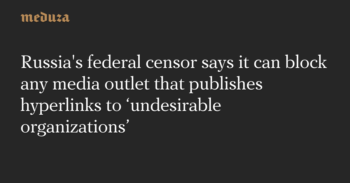 Russia’s federal censor says it can block any media outlet that publishes hyperlinks to ‘undesirable organizations’