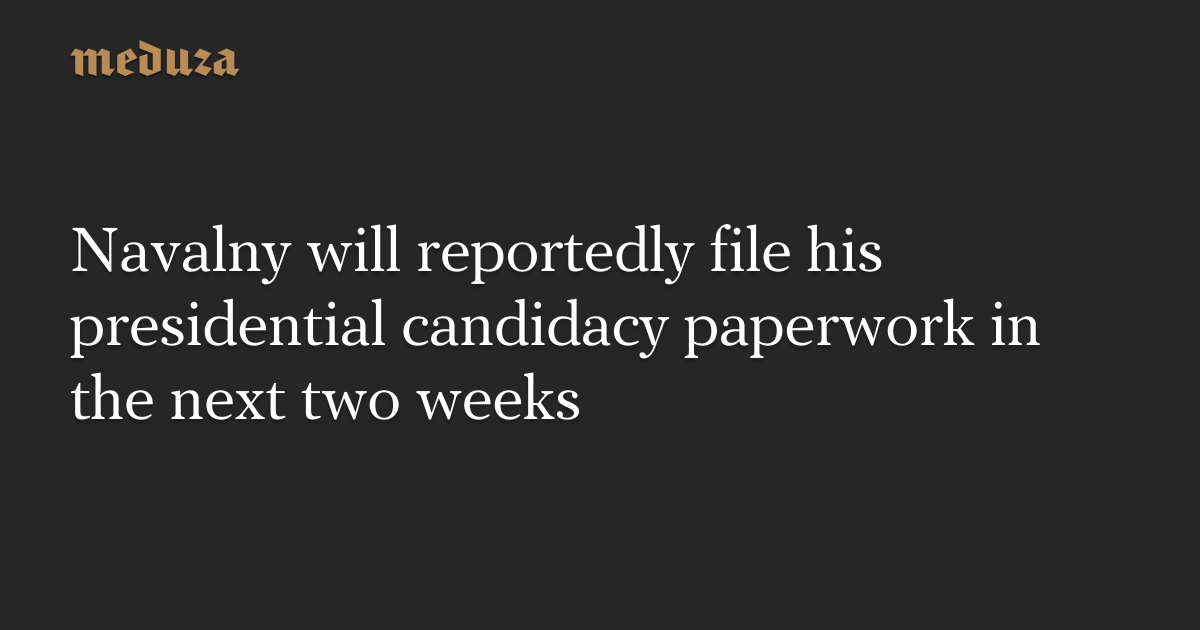 Navalny will reportedly file his presidential candidacy paperwork in the next two weeks