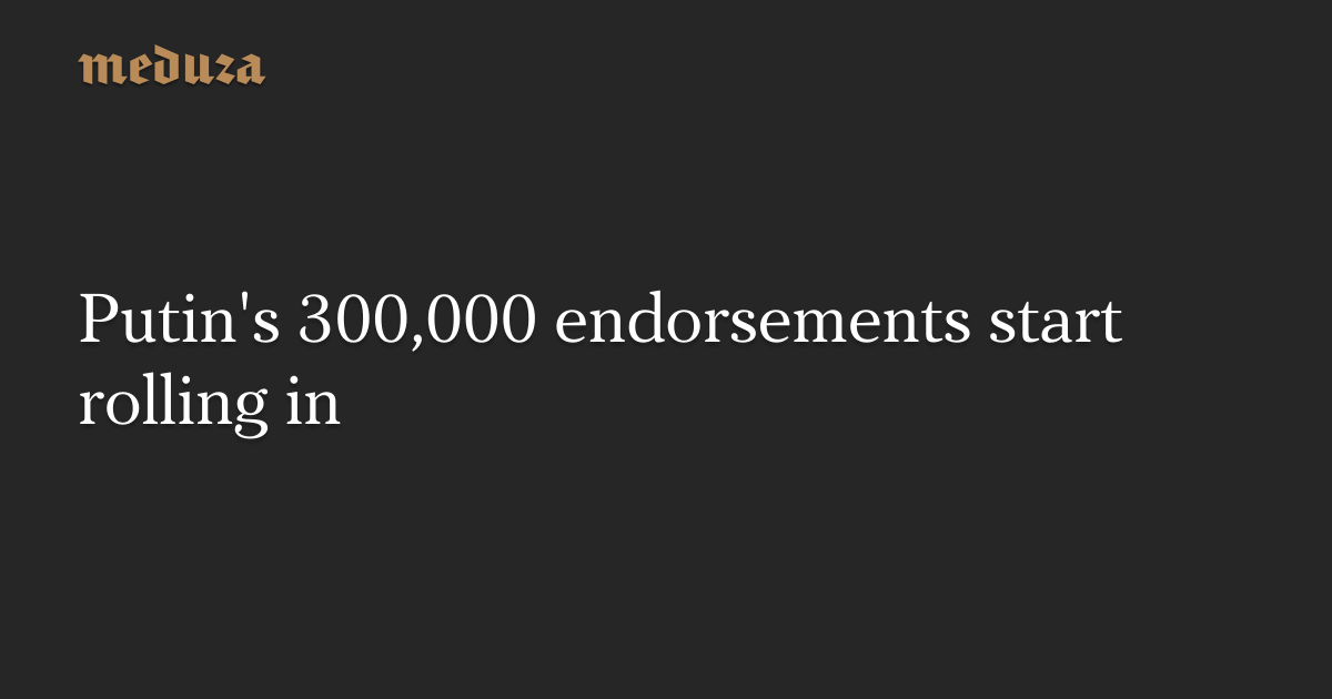 Vladimir Putin filed his candidacy application with Russia’s Central Election Commission on December 27. The commission approved his application the next day, allowing him to begin campaign fundraising and start collecting the needed 300,000 signatures endorsing his candidacy.