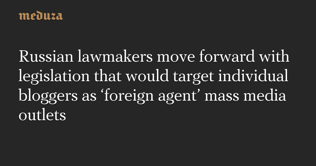 Russian lawmakers move forward with legislation that would target individual bloggers as ‘foreign agent’ mass media outlets