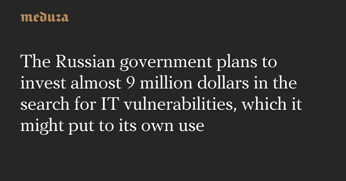 The Russian government plans to invest almost 9 million dollars in the search for IT vulnerabilities, which it might put to its own use