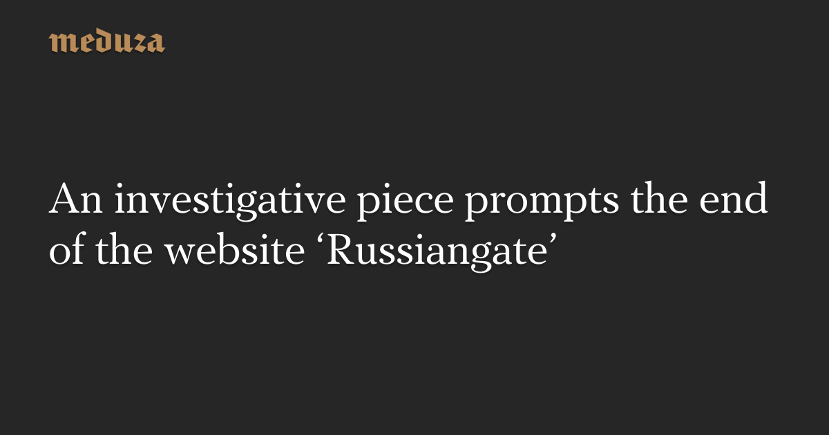 According to chief editor Alexandra Elagina, Russiangate’s “investors” then had the technical staff unpublish the story without her knowledge. The next day, she told the radio station Ekho Moskvy that she’s been fired, the website is being shut down, and police are even considering an extremism case.