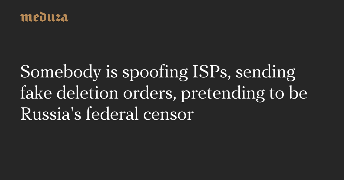 Somebody is spoofing ISPs, sending fake deletion orders, pretending to be Russia’s federal censor