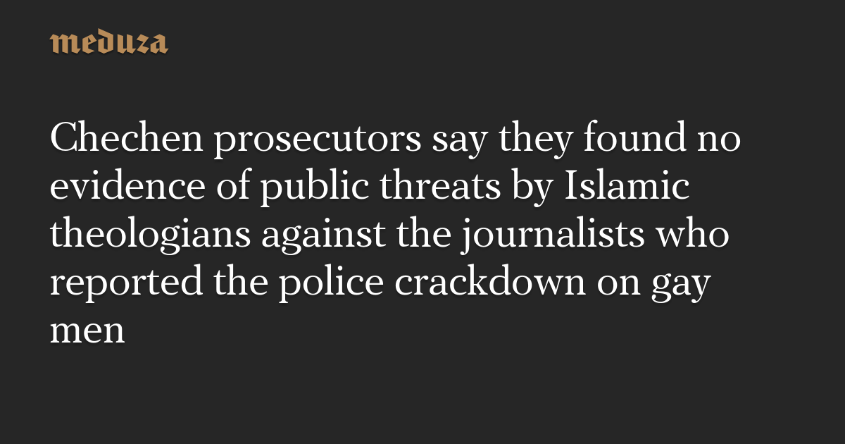 Chechen prosecutors say they found no evidence of public threats by Islamic theologians against the journalists who reported the police crackdown on gay men