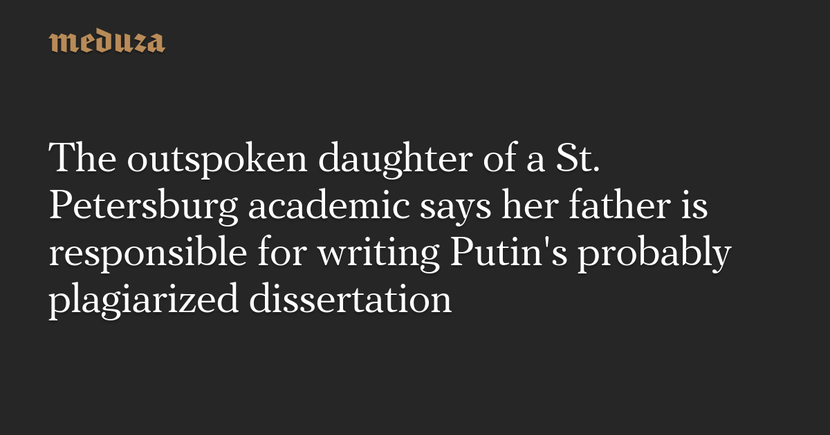 The outspoken daughter of a St. Petersburg academic says her father is responsible for writing Putin’s probably plagiarized dissertation
