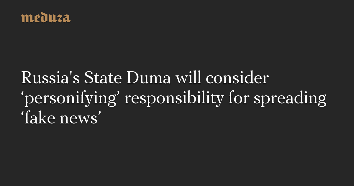 Lawmakers in the State Duma are reportedly kicking around the idea of “personifying” responsibility for the spread of fake news.