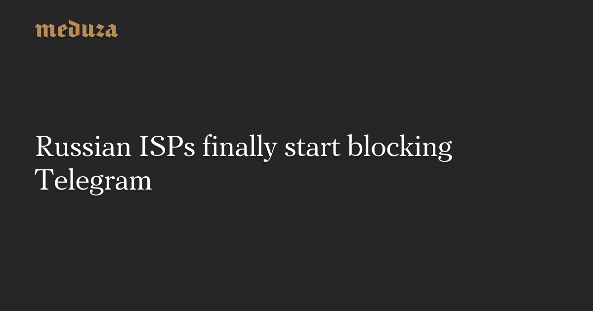 On Monday, April 16, Russia’s federal censor followed through on months of threats and finally ordered Internet service providers to start blocking Telegram. Last Friday, a Moscow district court granted Roskomnadzor the authority to block the popular instant messenger without allowing the company to stall the process in appellate court. Clients of all major telecoms in Russia have been reporting that Telegram has stalled on their phones. Roskomnadzor says it has also ordered Google and Apple to remove the app from their stores in Russia. (It’s unclear if they’ll comply.)