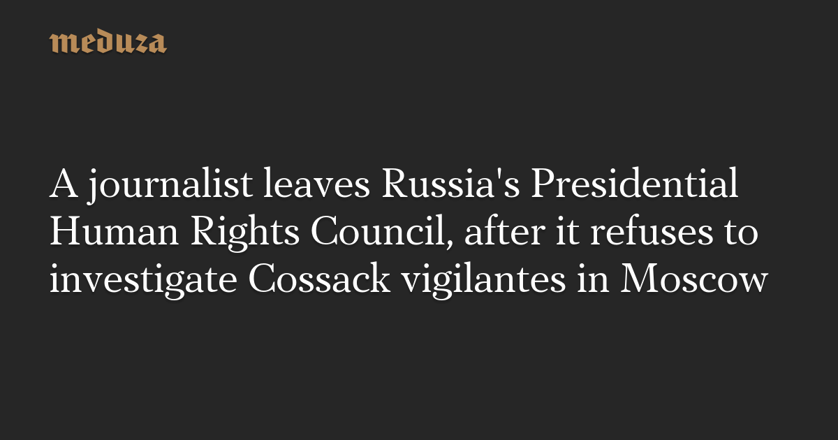 A journalist leaves Russia’s Presidential Human Rights Council, after it refuses to investigate Cossack vigilantes in Moscow