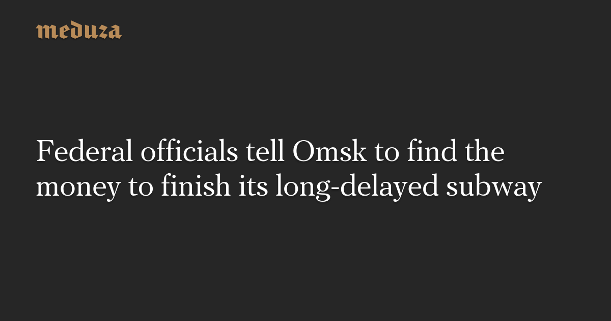 Federal officials tell Omsk to find the money to finish its long-delayed subway