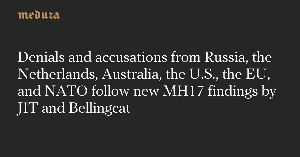 Denials and accusations from Russia, the Netherlands, Australia, the U.S., the EU, and NATO follow new MH17 findings by JIT and Bellingcat