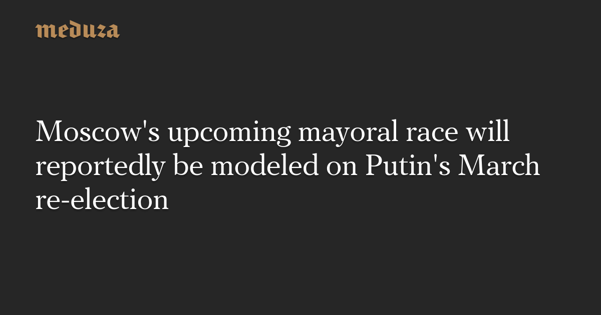 Moscow’s upcoming mayoral race will reportedly be modeled on Putin’s March re-election