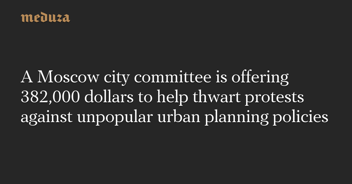 A Moscow city committee is offering 382,000 dollars to help thwart protests against unpopular urban planning policies