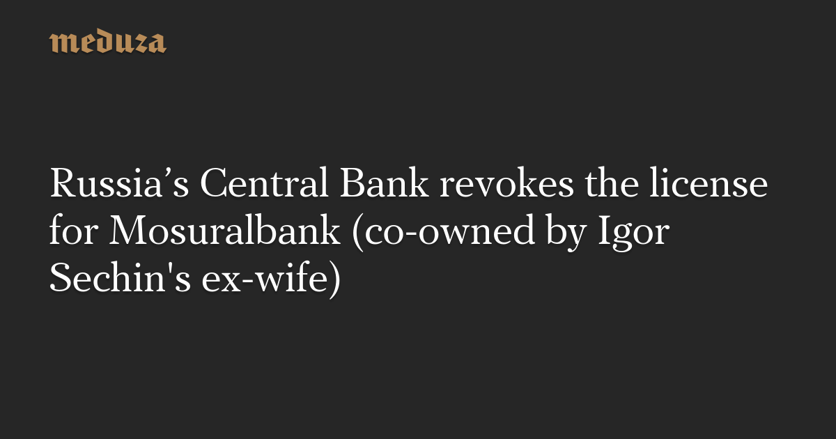 Russia’s Central Bank revokes the license for Mosuralbank (co-owned by Igor Sechin’s ex-wife)