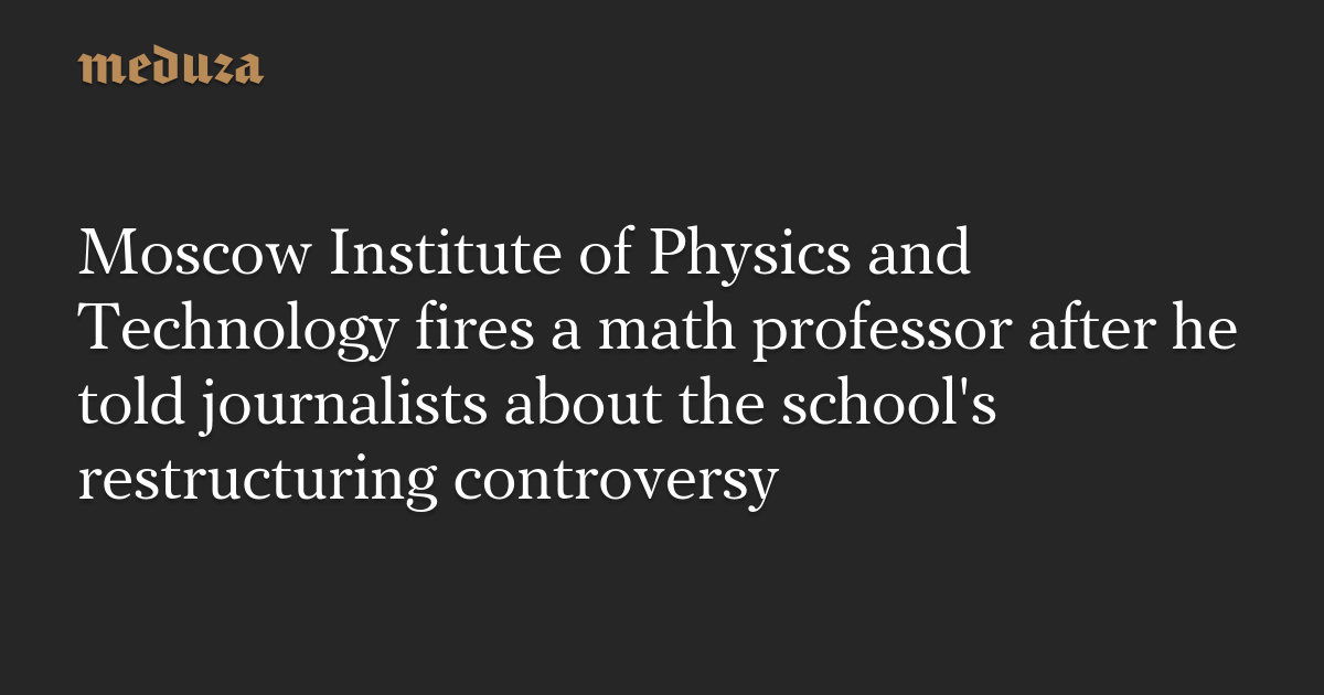 Moscow Institute of Physics and Technology fires a math professor after he told journalists about the school’s restructuring controversy