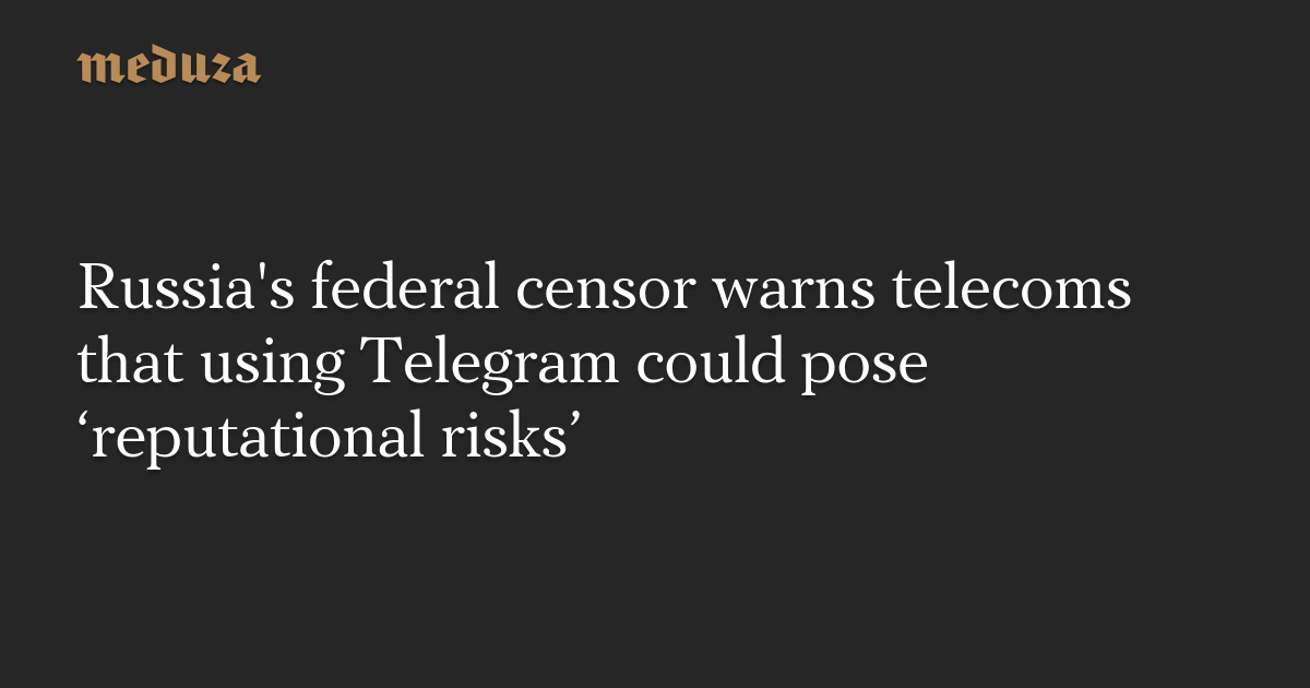 Russia's federal censor warns telecoms that using Telegram could pose ‘reputational risks’