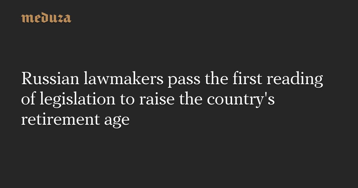 Russian lawmakers pass the first reading of legislation to raise the country’s retirement age