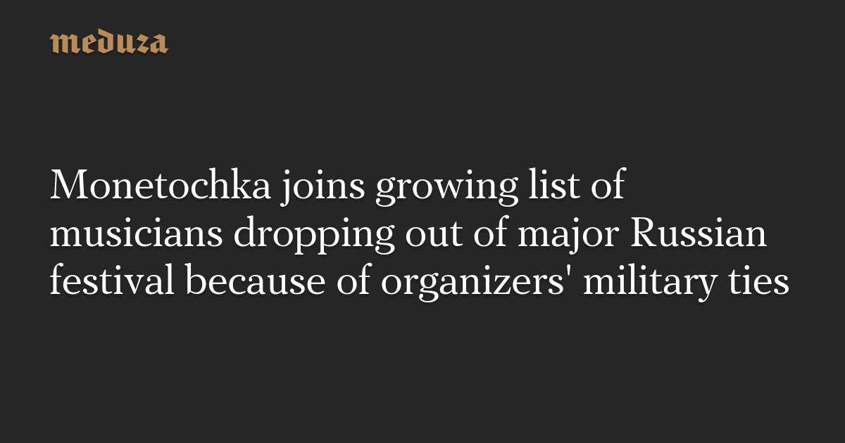 Monetochka joins a growing list of musicians who have canceled their performances at the festival because of the organizers’ continued cooperation with Russia’s Defense Ministry. The musicians argue that rock music is “incompatible with militarism.”