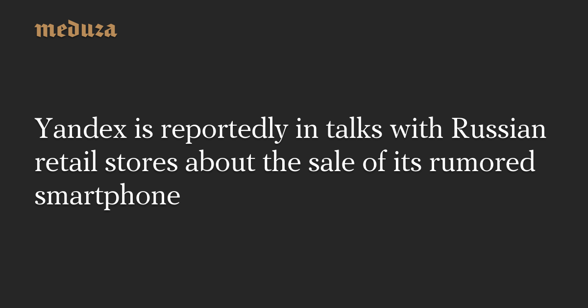 The Russian tech company Yandex is reportedly in talks with Russian retail stores about the sale of its rumored smartphone, according to the newspaper Vedomosti. Yandex hasn’t yet revealed the device’s technical specifications or its price, but sources say it’s expected to sell for between 17,000 and 20,000 rubles ($255 to $300). The company is reportedly insisting that stores impose a minimal markup on the product, which has apparently stalled negotiations.