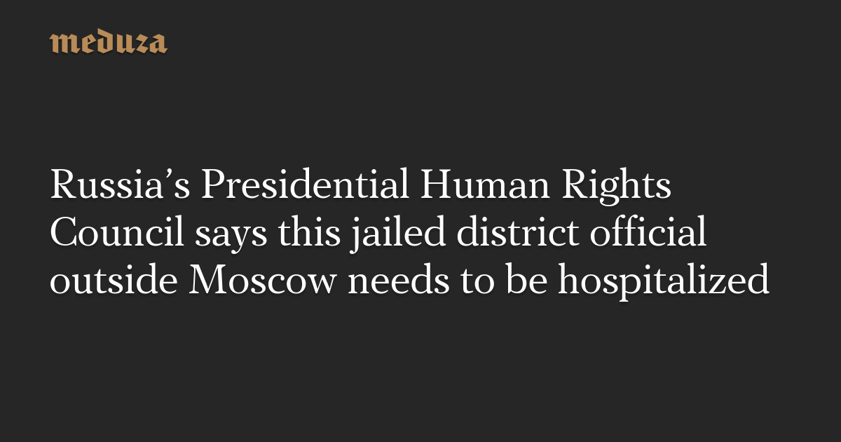Russia’s Presidential Human Rights Council says this jailed district official outside Moscow needs to be hospitalized
