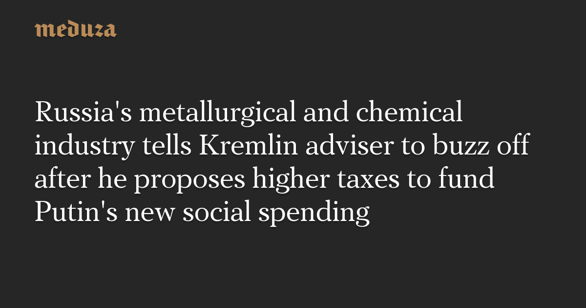 Russia’s metallurgical and chemical industry tells Kremlin adviser to buzz off after he proposes higher taxes to fund Putin’s new social spending