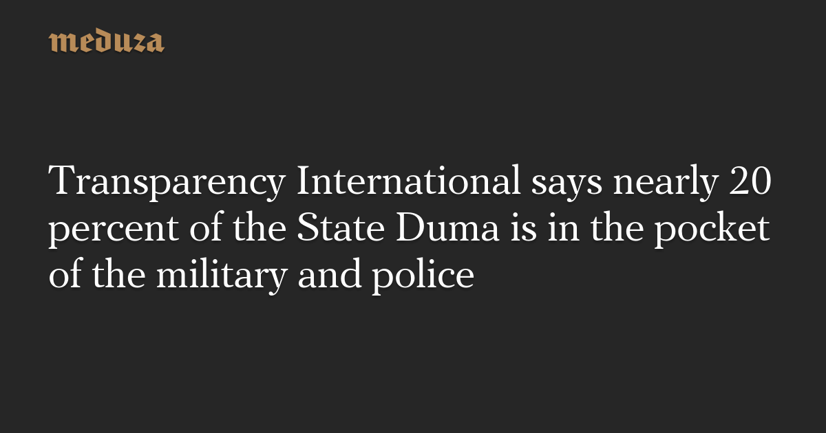 Transparency International says nearly 20 percent of the State Duma is in the pocket of the military and police