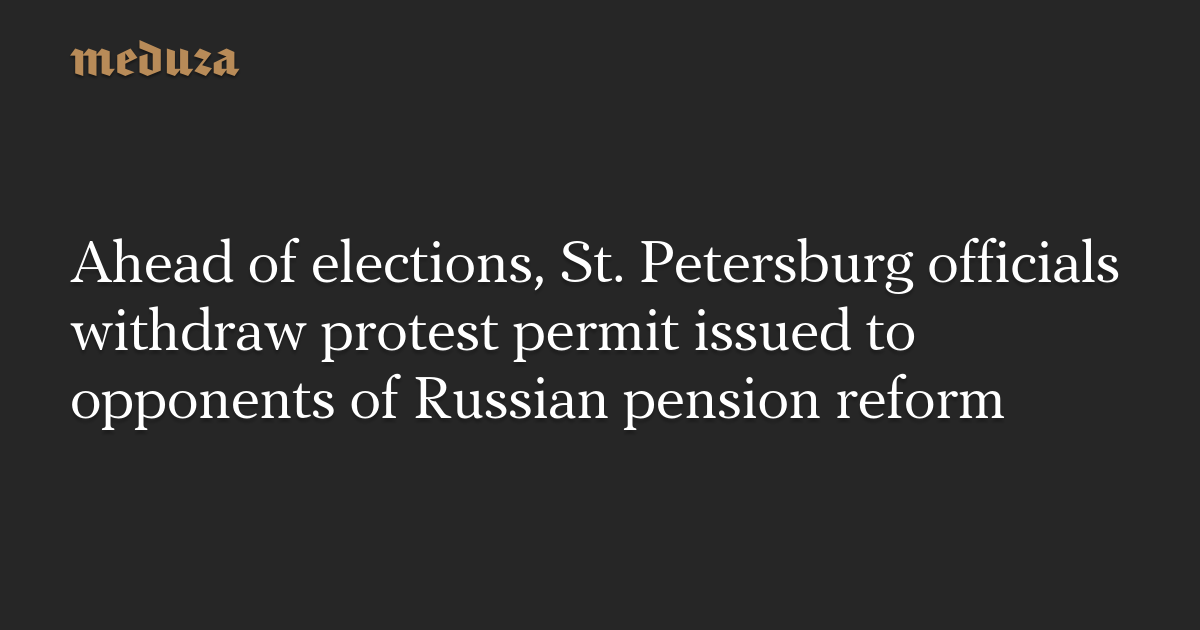 Ahead of elections, St. Petersburg officials withdraw protest permit issued to opponents of Russian pension reform
