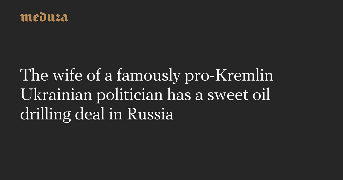 The wife of a famously pro-Kremlin Ukrainian politician has a sweet oil drilling deal in Russia