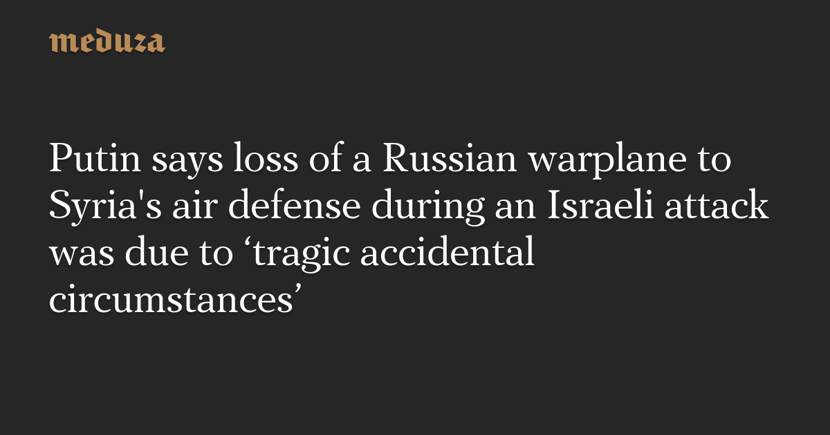 Putin says loss of a Russian warplane to Syria’s air defense during an Israeli attack was due to ‘tragic accidental circumstances’