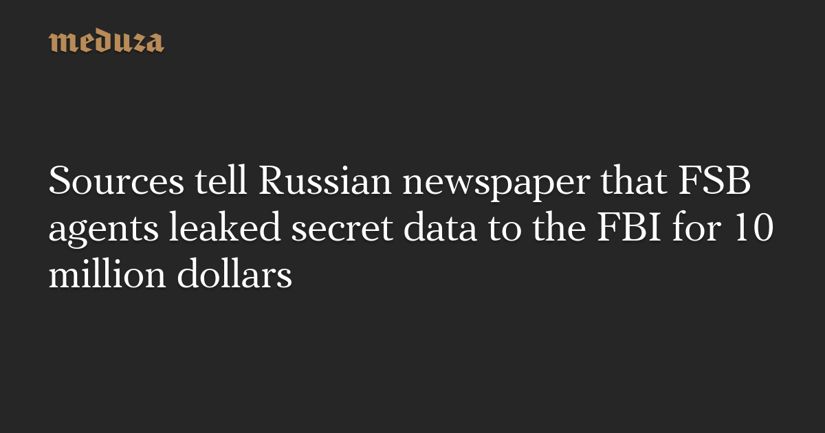 Sources tell Russian newspaper that FSB agents leaked secret data to the FBI for 10 million dollars