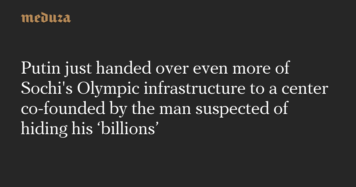 Putin just handed over even more of Sochi's Olympic infrastructure to a center co-founded by the man suspected of hiding his ‘billions’