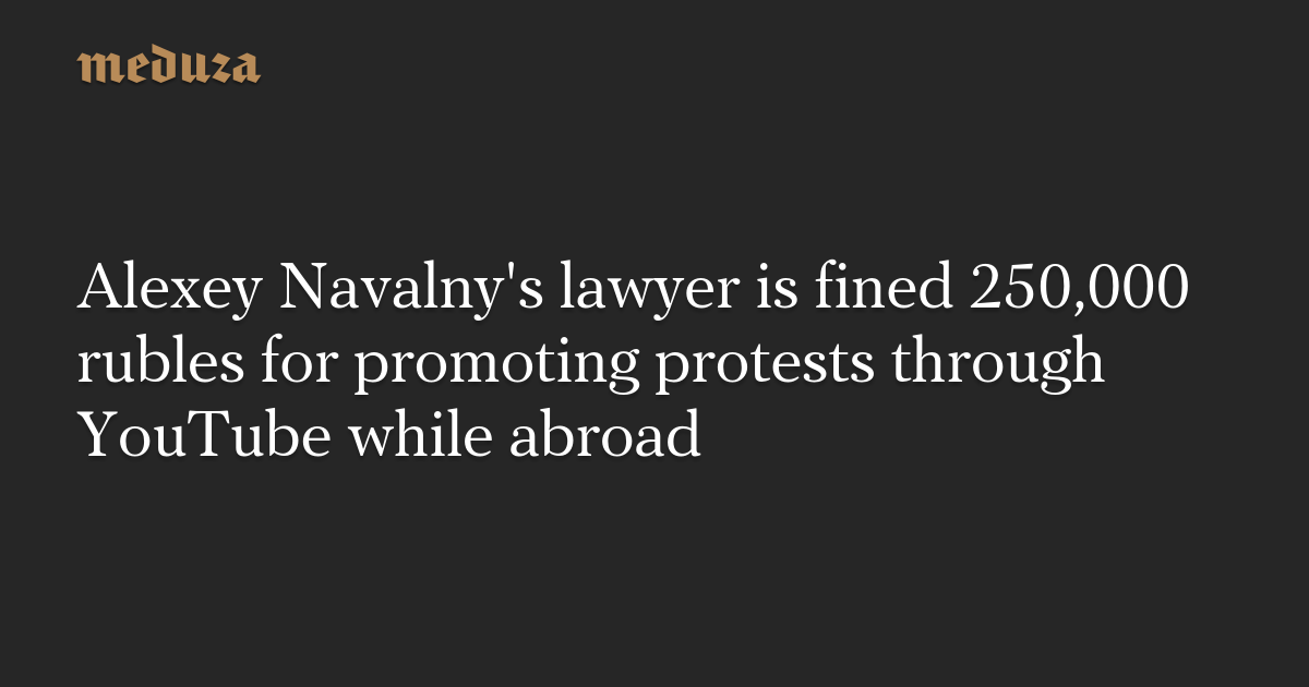 Alexey Navalny’s lawyer is fined 250,000 rubles for promoting protests through YouTube while abroad