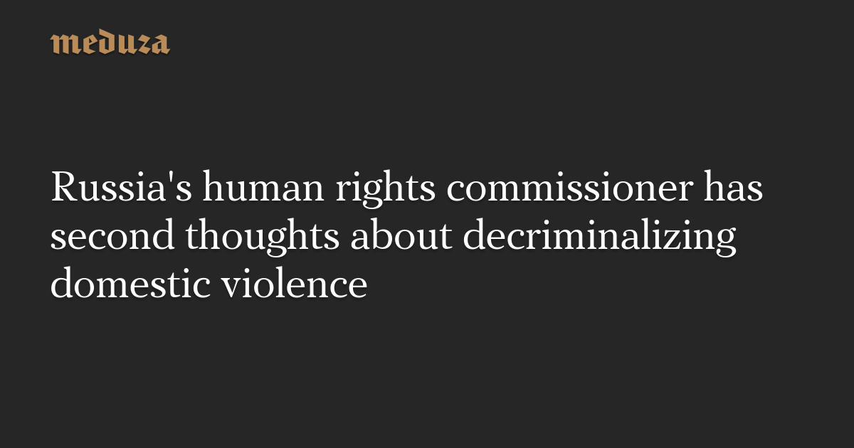 Russia's human rights commissioner has second thoughts about decriminalizing domestic violence