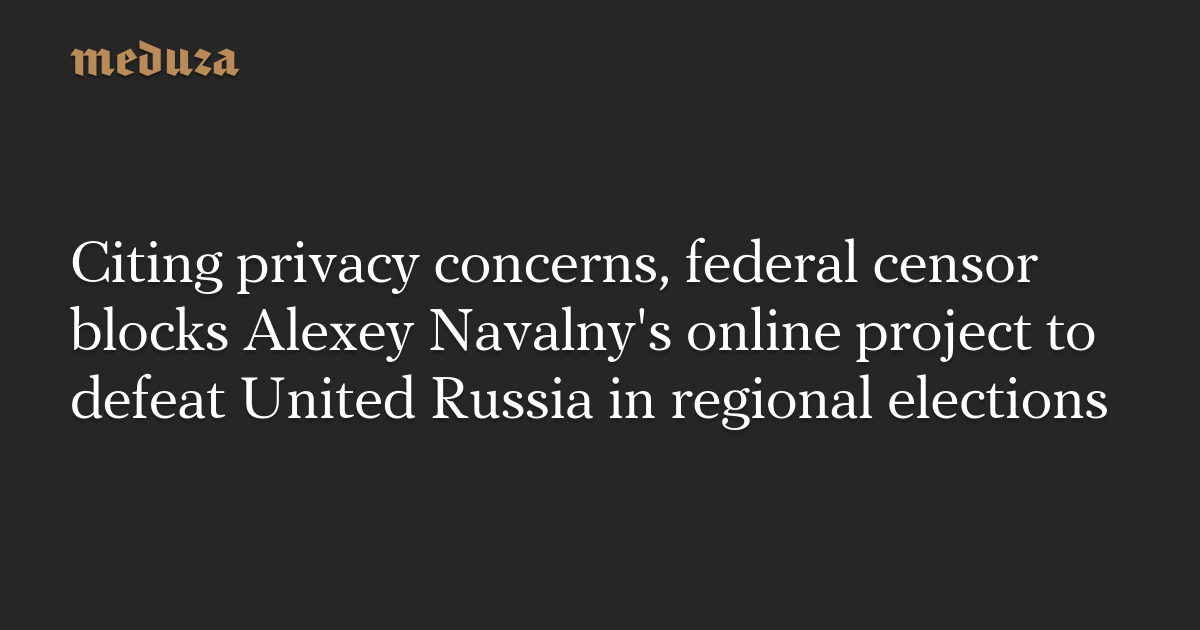 Citing privacy concerns, federal censor blocks Alexey Navalny’s online project to defeat United Russia in regional elections