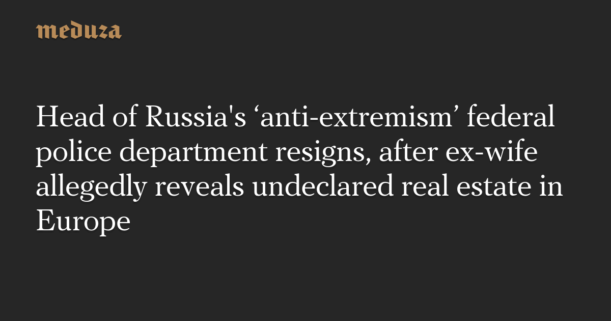 Head of Russia's ‘anti-extremism’ federal police department resigns, after ex-wife allegedly reveals undeclared real estate in Europe